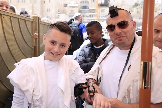 קבלת הפנים שהיתה מתוכננת לשער יפו עברה במהרה לאולם סגור בעקבות מזג האוויר אך בהמשך היום התבהר והמשפחה זכתה להנות מחגיגת בר מצווה בכותל בליווי שופרות ותופים. תפילה חגיגית בליווי חזן וארוחת צהריים מפנקת.